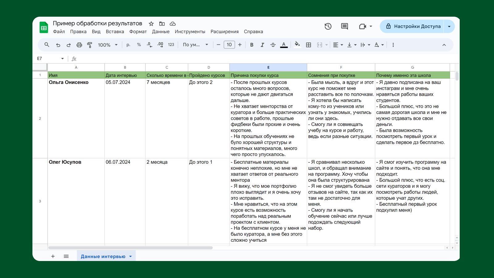 Наша цель — не просто дать оценку продукту или отдельным его характеристикам, а понять мышление и истинные потребности респондентов. Это поможет создать и предложить им продукт, который действительно отвечает их запросам и желаниям. Именно в этом и заключается глубина такого интервью.